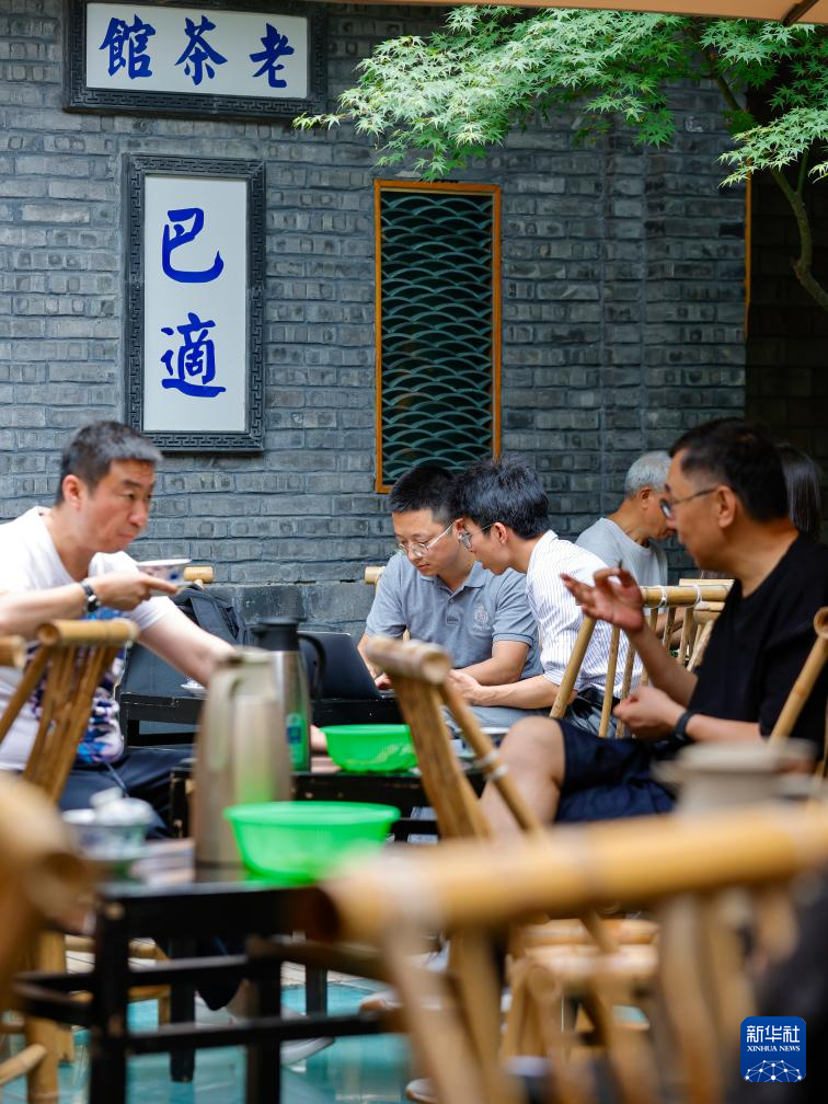 人們在成都泰初里年夜慈寺內的茶社品茗(2023年6月7日攝)。