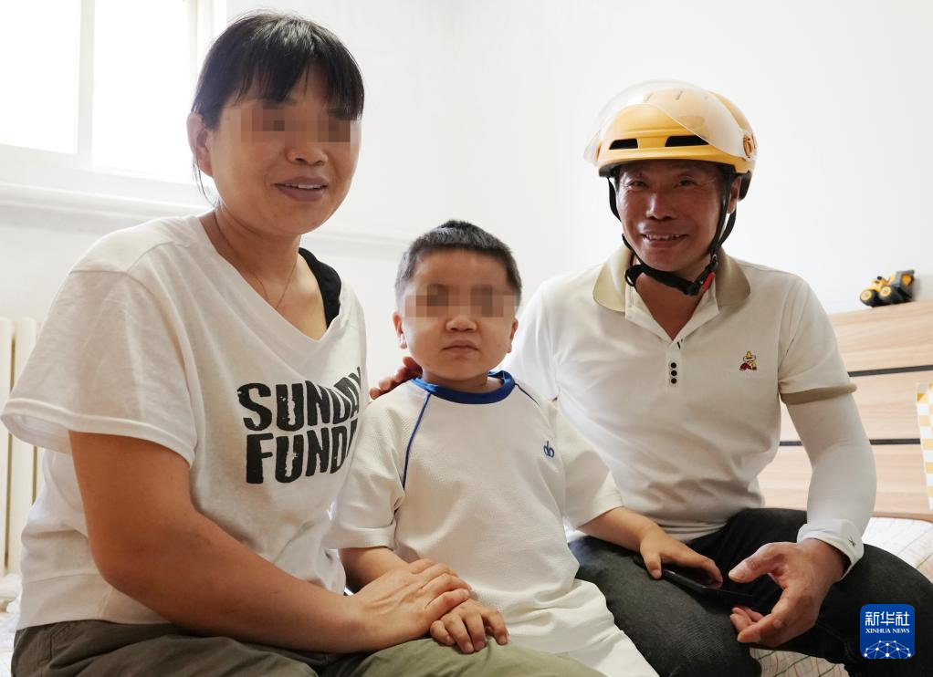 7月22日,孟世祥和小兒子在一路。新華社記者 張晨霖 攝