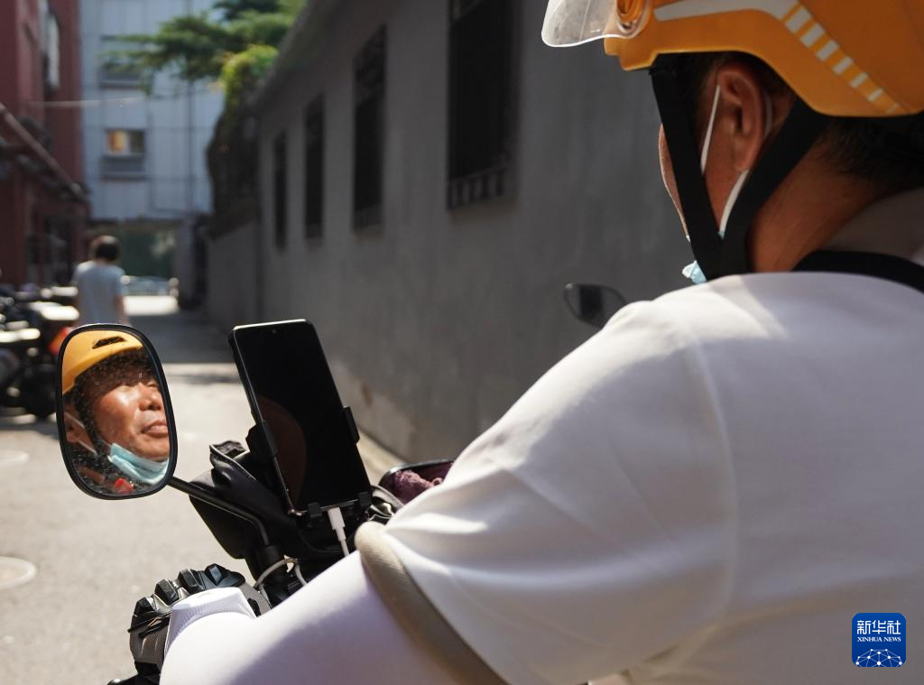 7月2包養2日,孟世祥騎行在送單路上。新華社記者 張晨霖 攝
